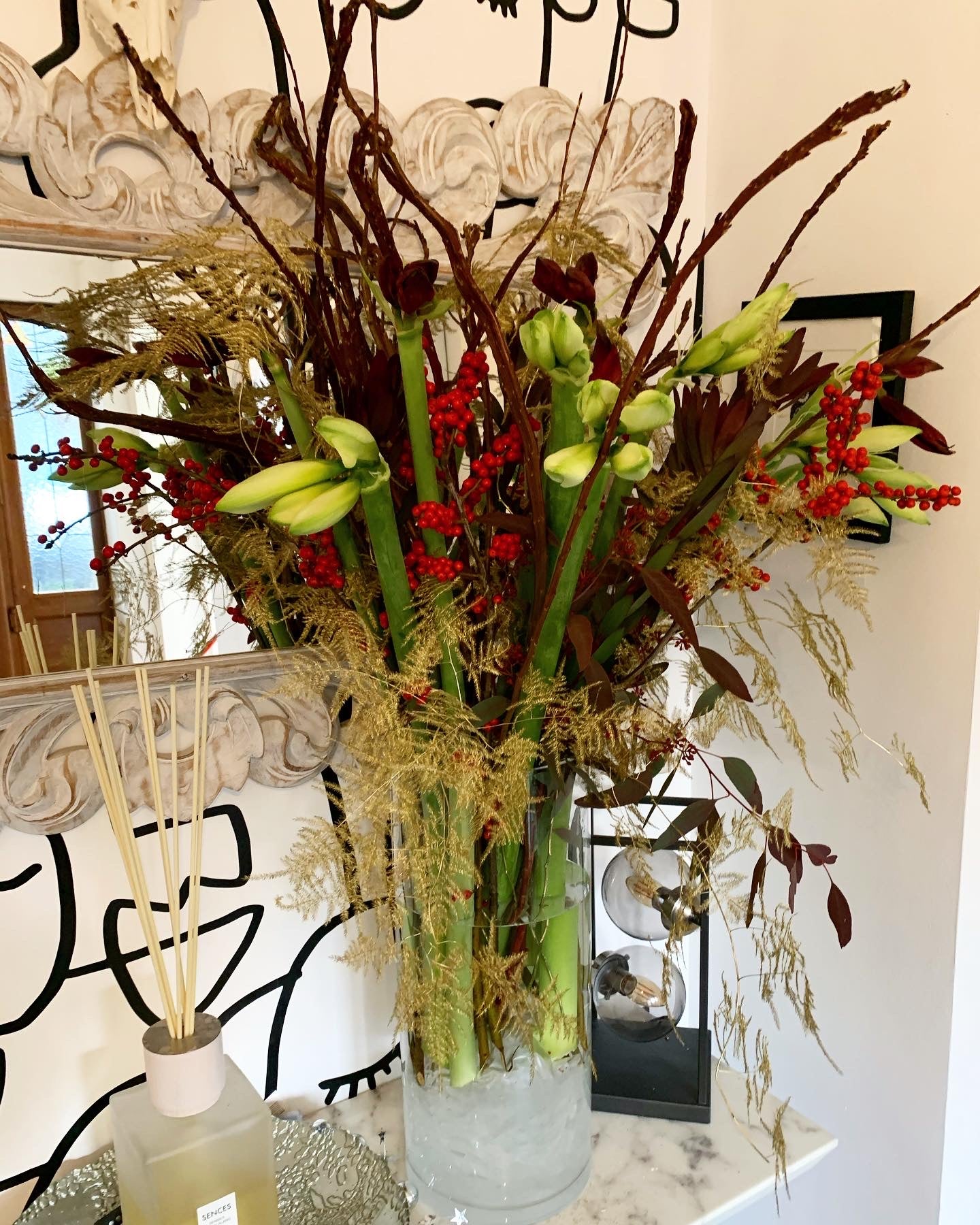 A mixture of what is fresh and in stock day to day in Christmas colours.