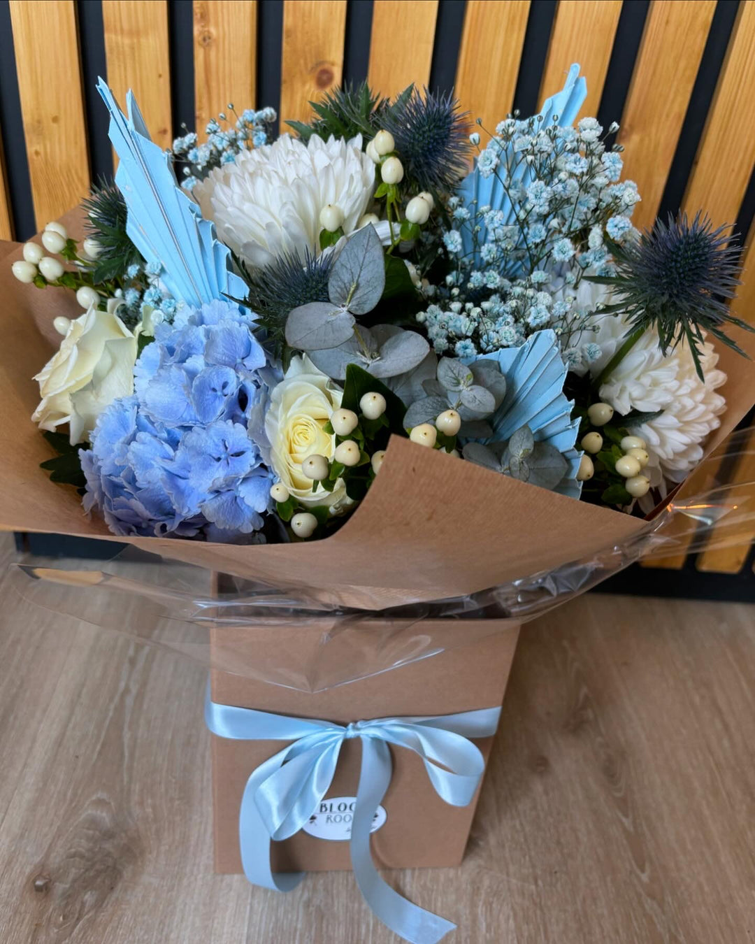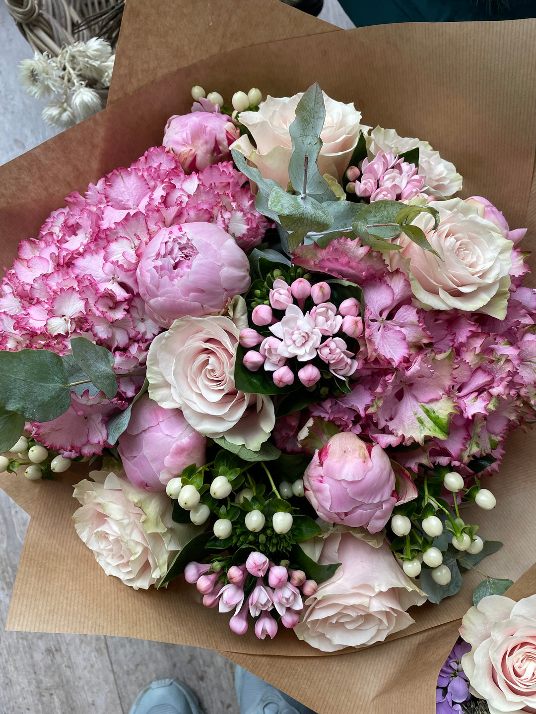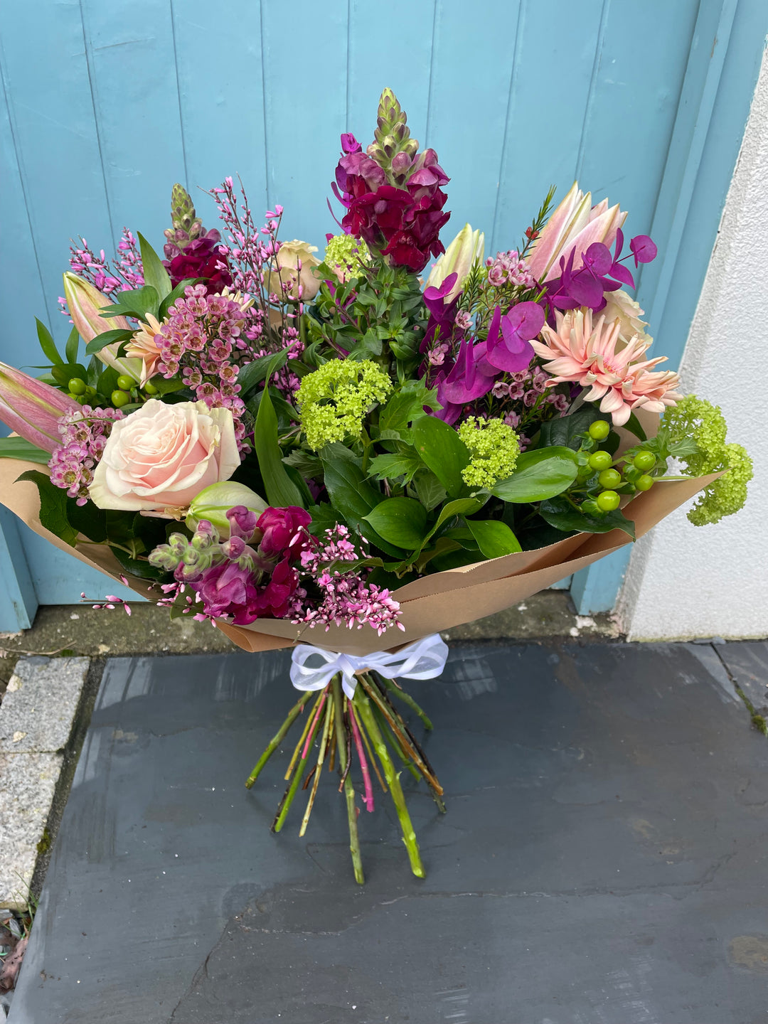 At our flower shop, we prioritise using seasonal flowers and foliage, which means that the availability of specific blooms may vary. However, if you have a special flower in mind, we will make every effort to include it in your arrangement. Please note that the images displayed on our website are examples of our work not necessarily what you’re ordering. When you order a handtied bouquet, it will be styled in true Bloom Room style and beautifully wrapped in our signature kraft paper and tied with a matching coloured ribbon.